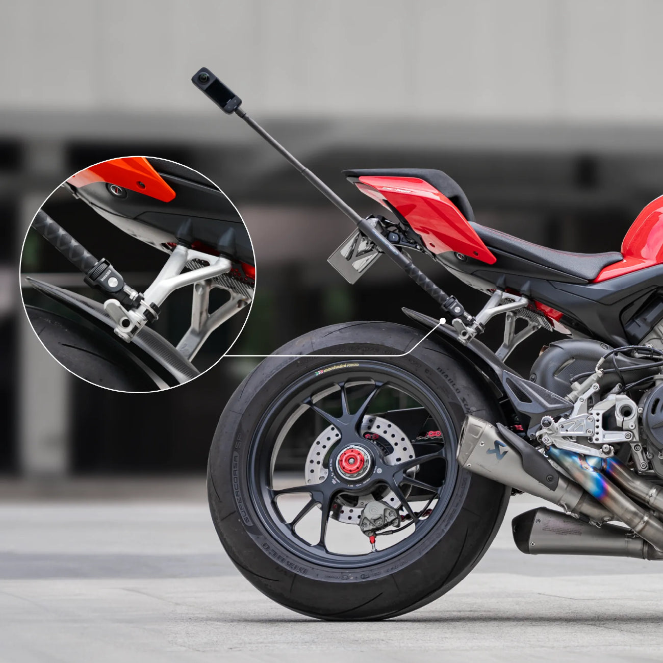 Invisible Selfie Stick is not included in the Standard bundle. All-new design, for a stabler onboard third-person shot. Adaptable to most mainstream motorcycles. Standard 1/4" adapter design, supports the Insta360 Action Invisible Selfie Stick. GO 2 must be assembled with the Action Mount Adapter.