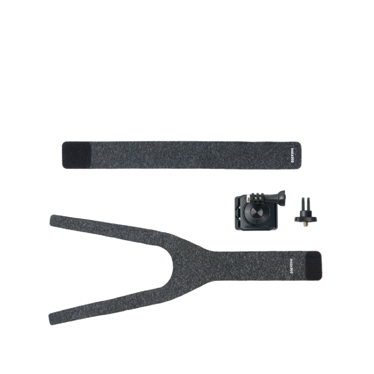 The straps thread through openings on either side of the 360° rotating camera mount, which your compatible action camera can be attached to using the built-in 2-prong mount or the 1/4"-20 mount adapter. Even after securely attaching your camera, you can still freely adjust the positioning to get the ideal shot angle. When using a waterproof camera housing, the mount can be taken underwater for dynamic water sports footage.