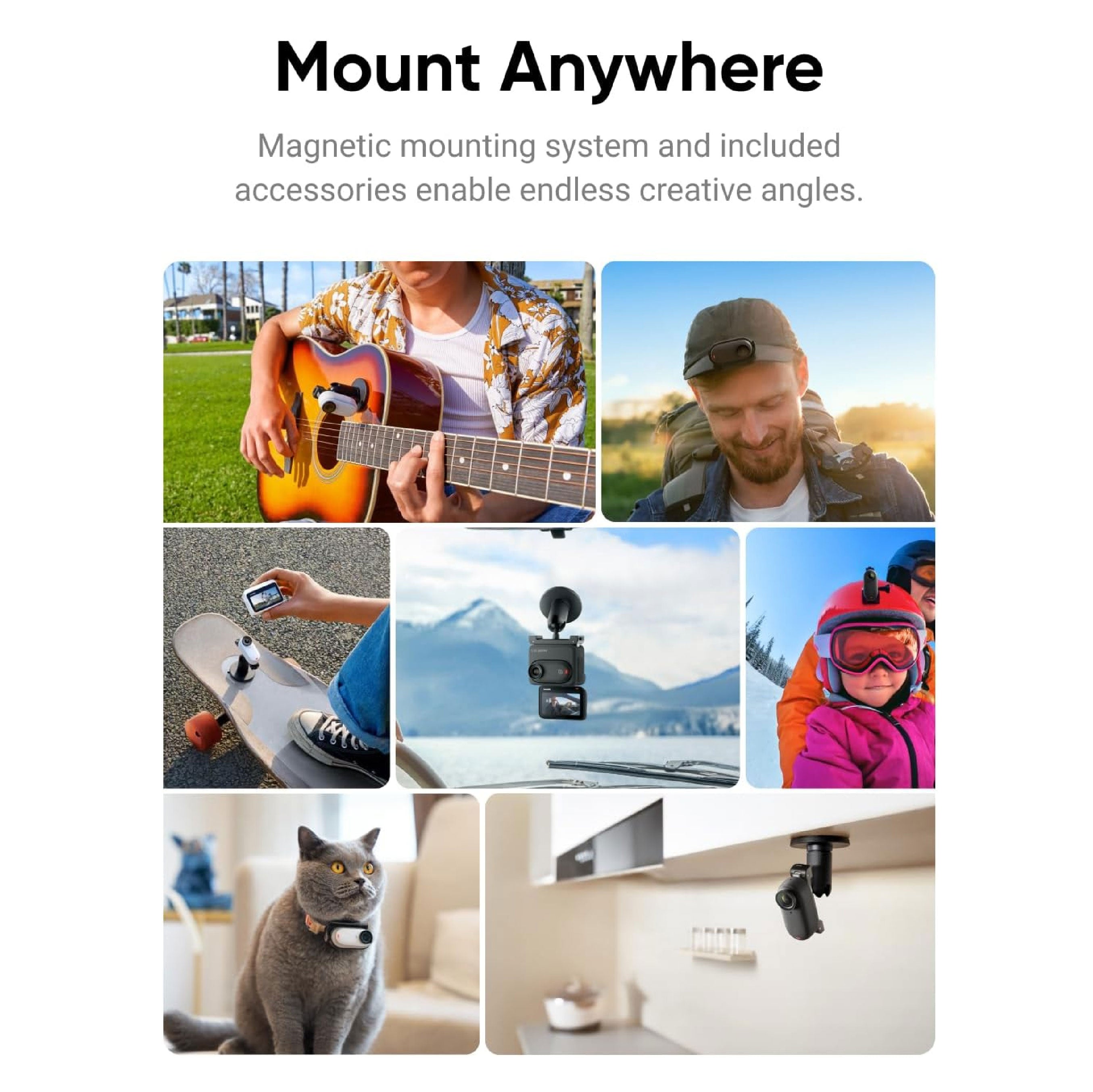 With a convenient 2.2" flip touchscreen, the Action Pod connects to GO 3 over Bluetooth for real-time remote control and live preview. Difficult angles, from a cat’s collar to a kid’s bike, can now be easily framed and mastered. The best part—the Action Pod and the camera are compatible with the same magnetic mounts, ensuring hassle-free setup and enhanced versatility. Running low on power is now easily remedied by simply putting GO 3 into the Action Pod, attaching it to the same mount, and continuing to shoot.