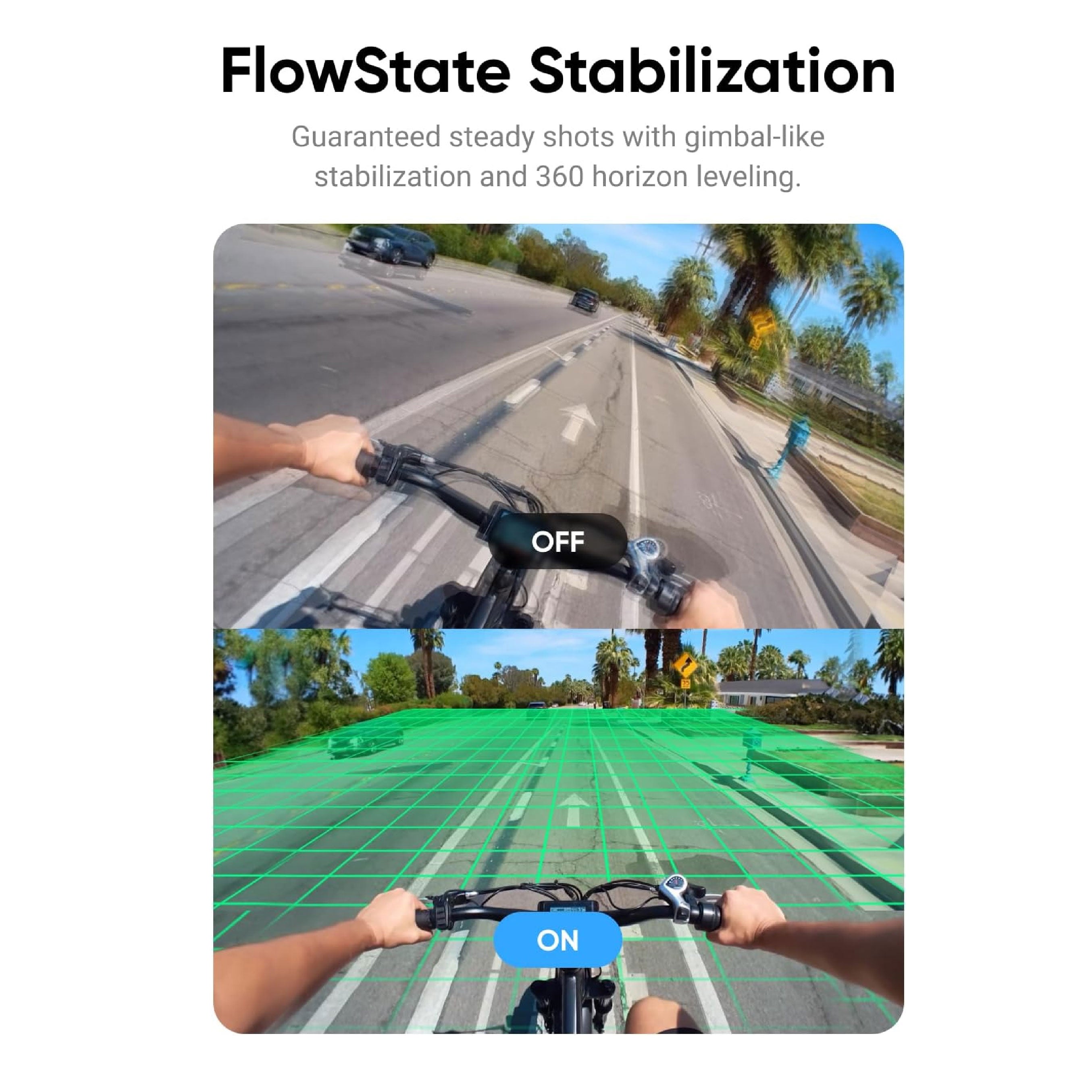 Coupling all of this with an IPX4 water-resistant design for the Pod and IPX8 waterproofing to 16ft (5m) for the camera, GO 3 is perfect for capturing memories anywhere. A signature of Insta360, GO 3 comes equipped with FlowState Stabilization and 360 Horizon Lock, ensuring silky-smooth footage even in the most action-packed scenarios and eliminating unwanted tilting or distortion. A replaceable Lens Guard also comes pre-installed for worry-free shooting.